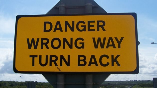 • Red or orange signs equal – caution, danger, or stop.  When you see red or orange signs of lights they are not just a suggestion, but a warning to slow down, stop and pay attention.  For example – an upside down triangle means you must yield to crossing traffic, and a blinking red light means the same thing as a stop sign, so stop and pay attention before you proceed.